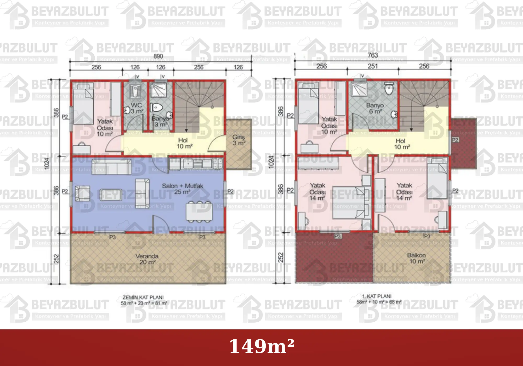 149m² Çift Katlı Prefabrik Projesi